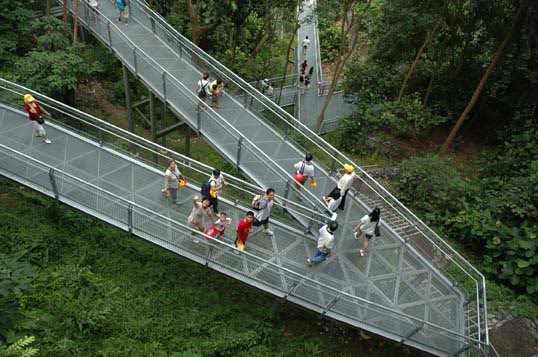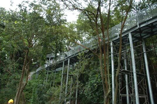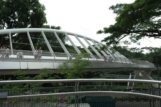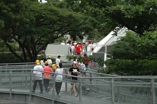 8.30am 抵达花柏山,开始南部山脊之行(Southern Ridges)–耗资2550元兴建,沿着山径,经过本地最高的人行天桥–亨德申波浪桥(Henderson Waves),全长274公尺,最高点约等于12层楼高的组屋.越过波浪桥,来到以"之"字形曲折前进而全长1.3公里的高架走道(Elevated Walkway).到了高架走道的尾端,穿过造型如一片巨叶的亚历山大拱桥(Alexandra Arch)便来到园艺园林(HortPark),全长约为1.6公里.