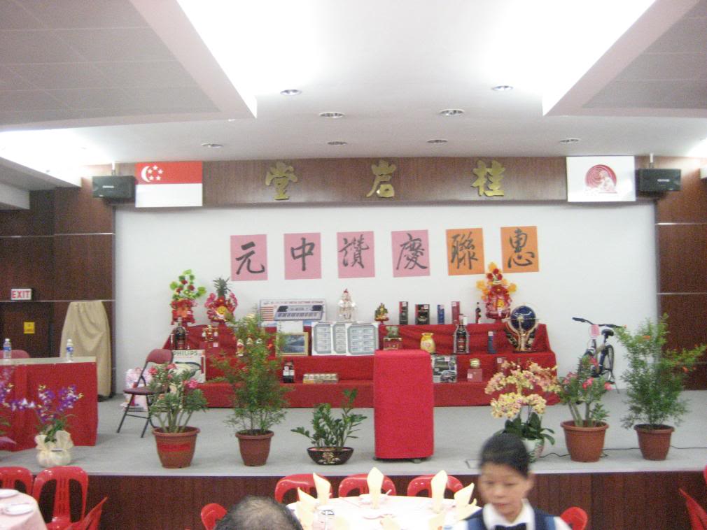 农历七月十五日中元节,也称为盂兰盆节或鬼节.相传七月间地狱門会开放一個月.地狱里的無主孤魂,能在这段时间從阴间出來,到阳间找東西吃.因此许多南 方人都会在這一個月举行「普度」的祭祀仪式.用以化解其怨气,不致於為祸人间。公会的部分会员遵循传统,主办了庆中元的活动.庆祝方式除 了祭拜之外,也在晚宴上进行福物的竟标活动。