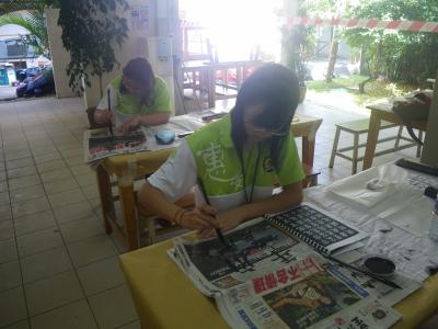 新加坡的书法比赛代表聚精会神的在起草